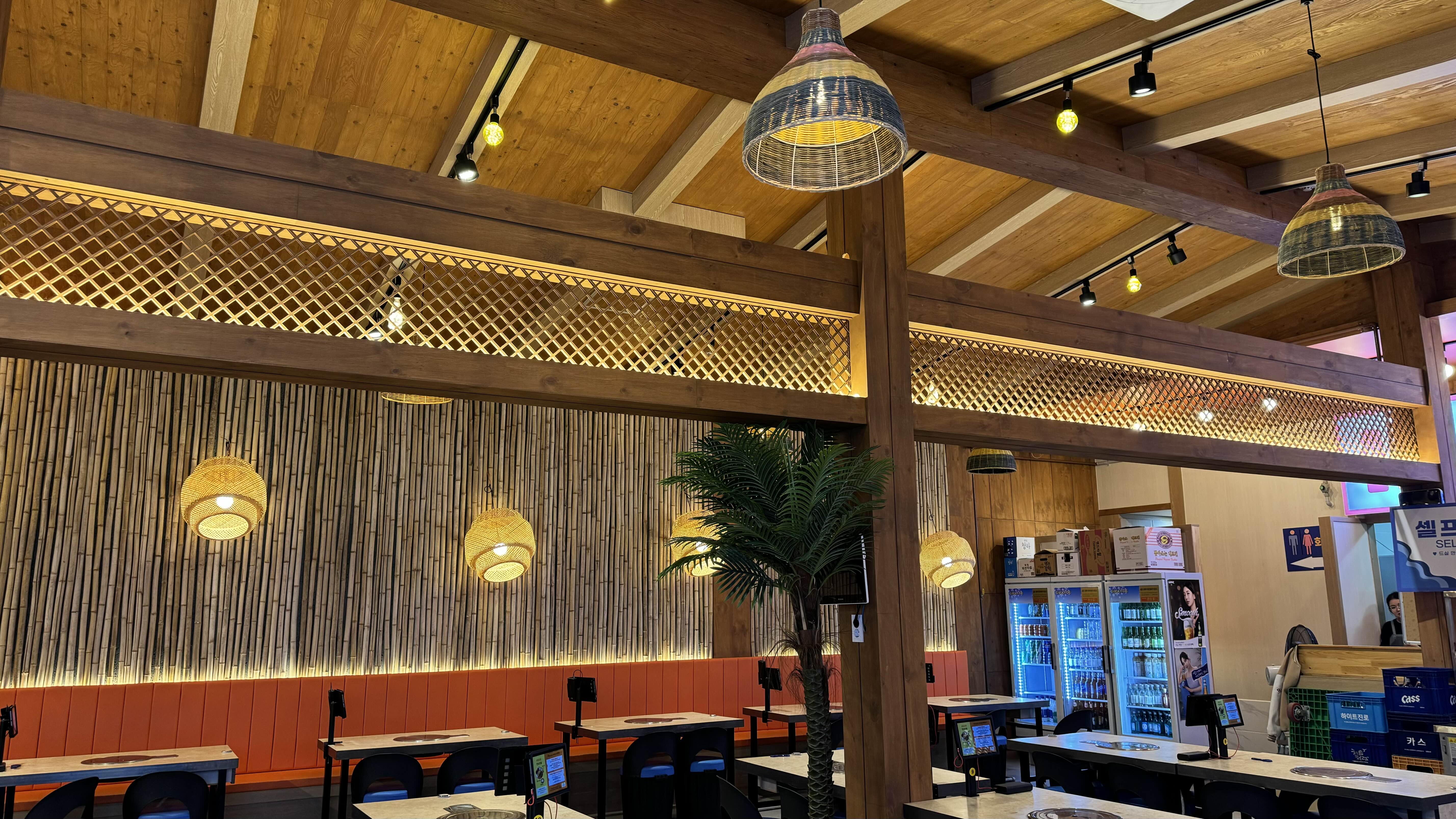 시원해 보이는 인테리어로 되어 있고 천장이 높아서 좋았습니다.