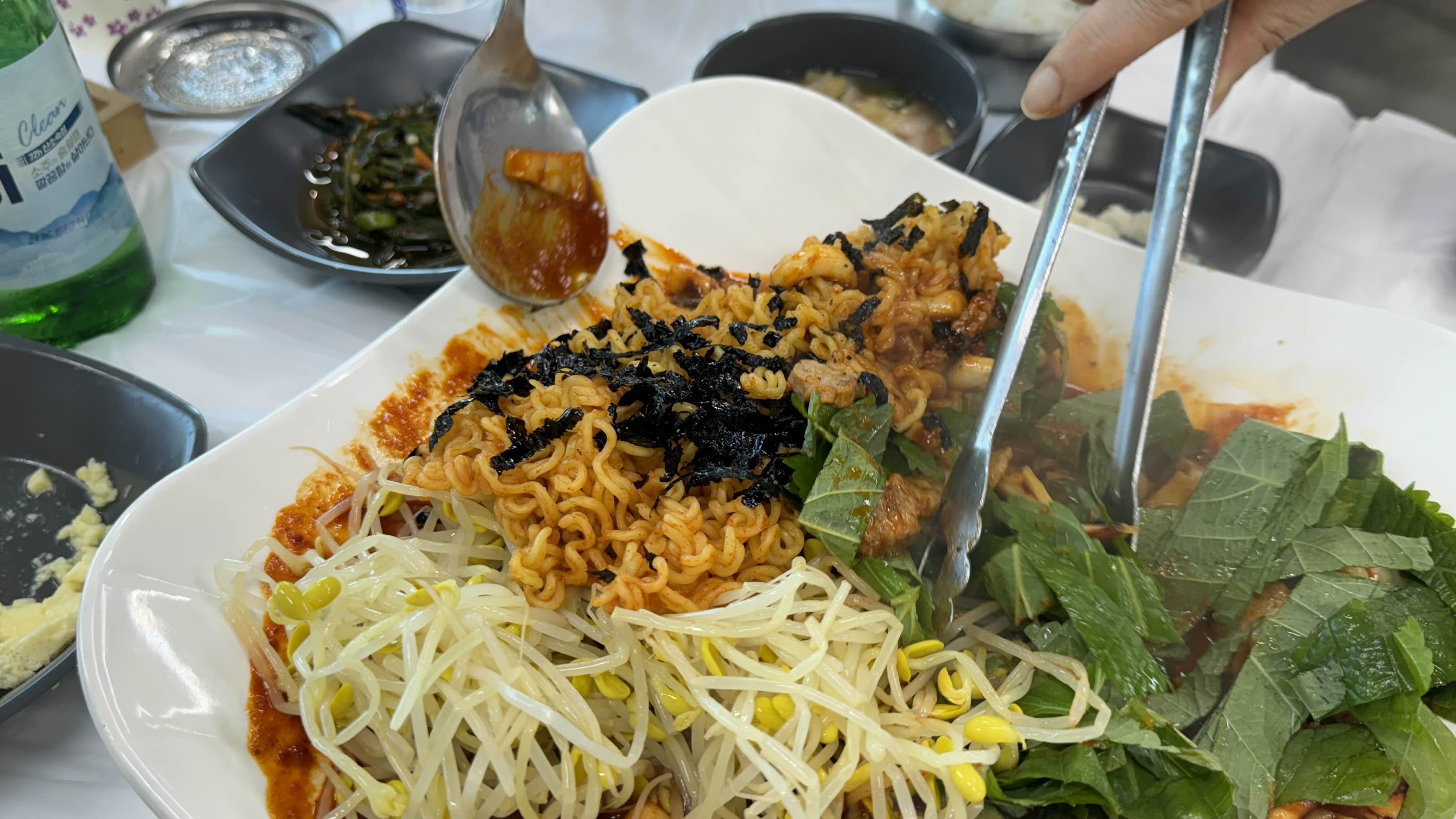 라면 사리 추가했는데 조금 늦게 나와서 기다렸다가 같이 섞고 먹었습니다.