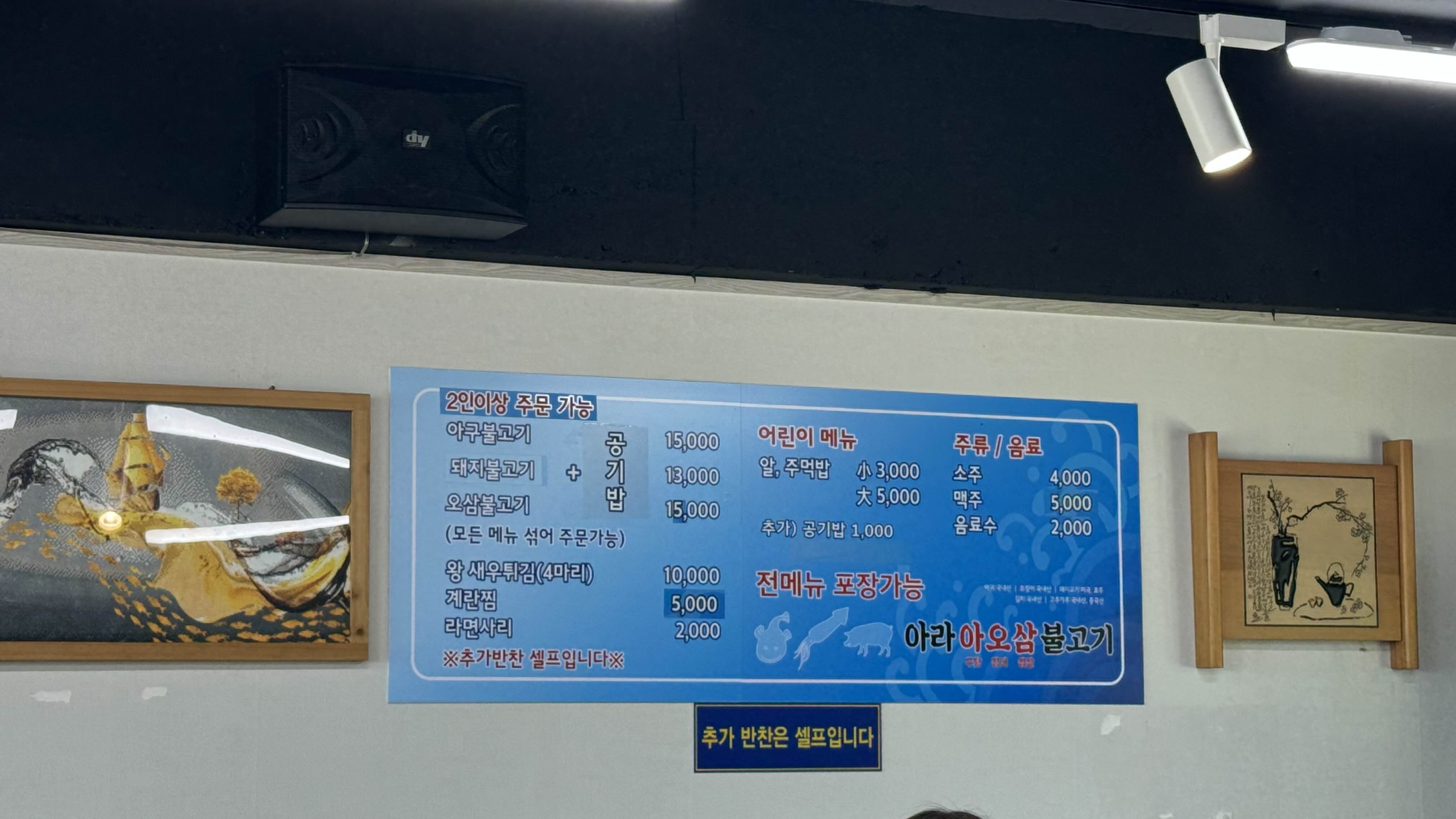 아귀 / 오징어 / 삼겹살 불고기를 팔아서 아오삼 불고기입니다.
