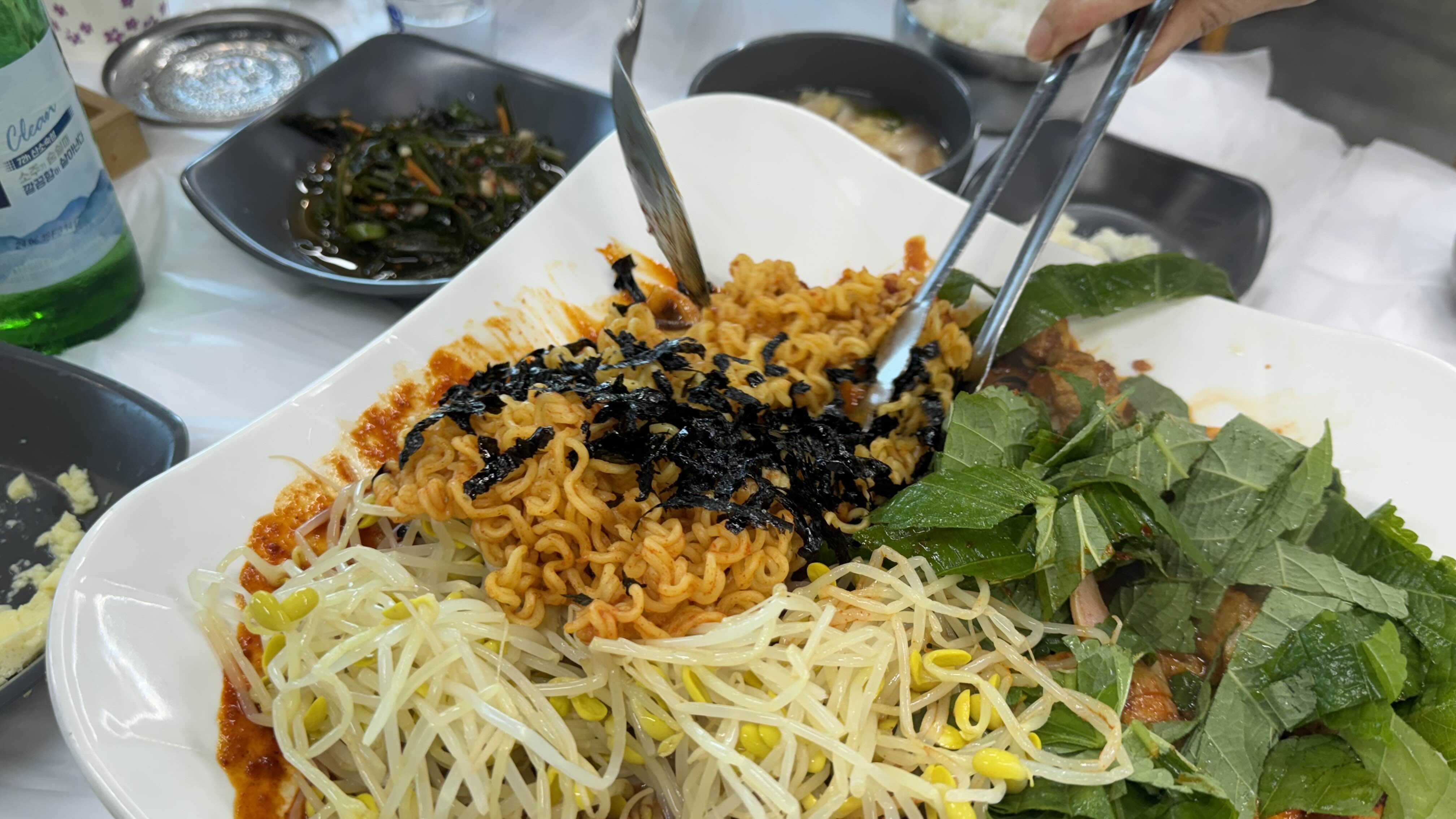 라면 사리 추가했는데 조금 늦게 나와서 기다렸다가 같이 섞고 먹었습니다.