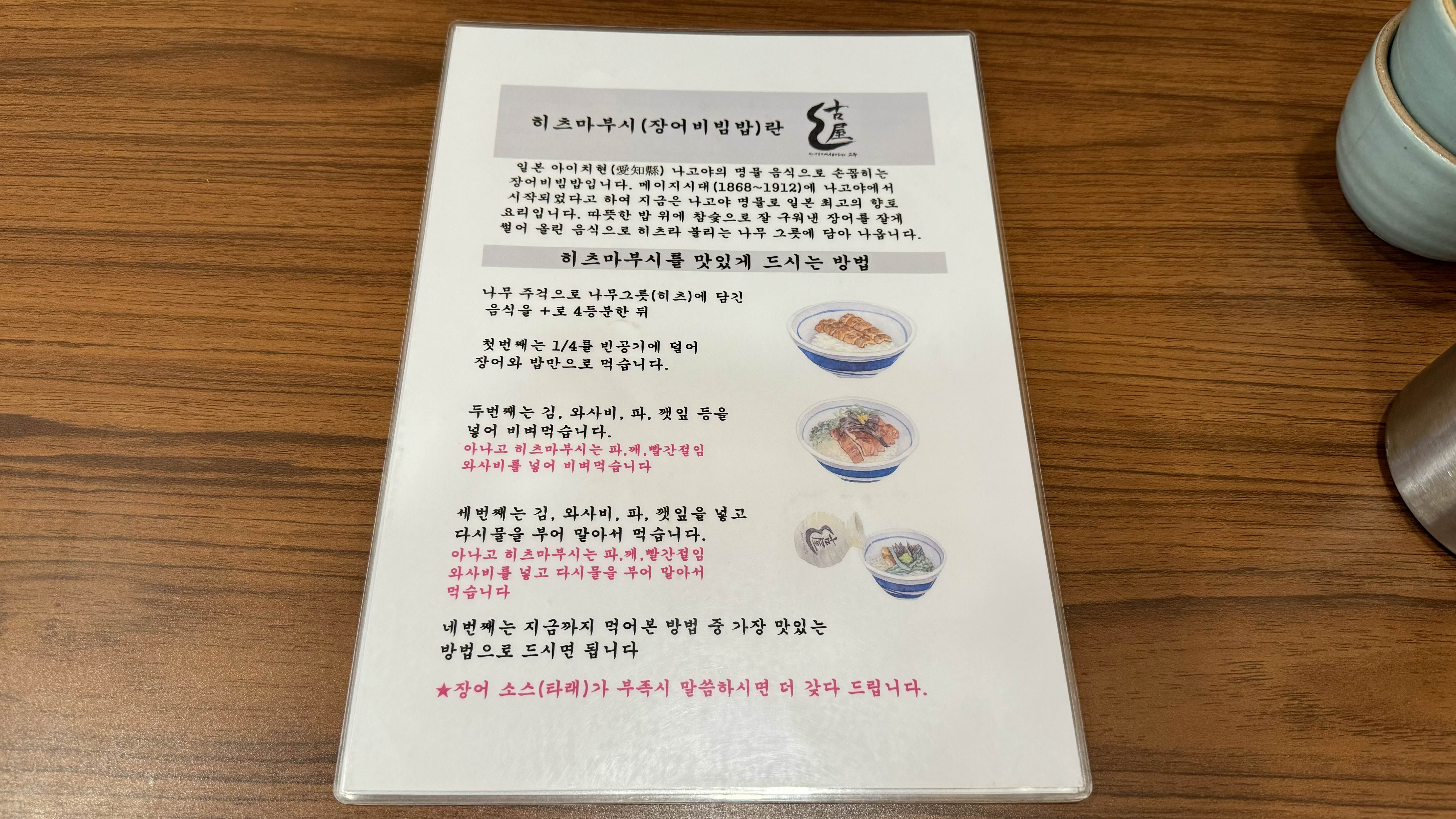 중요한 메뉴판과 먹는 방법입니다!