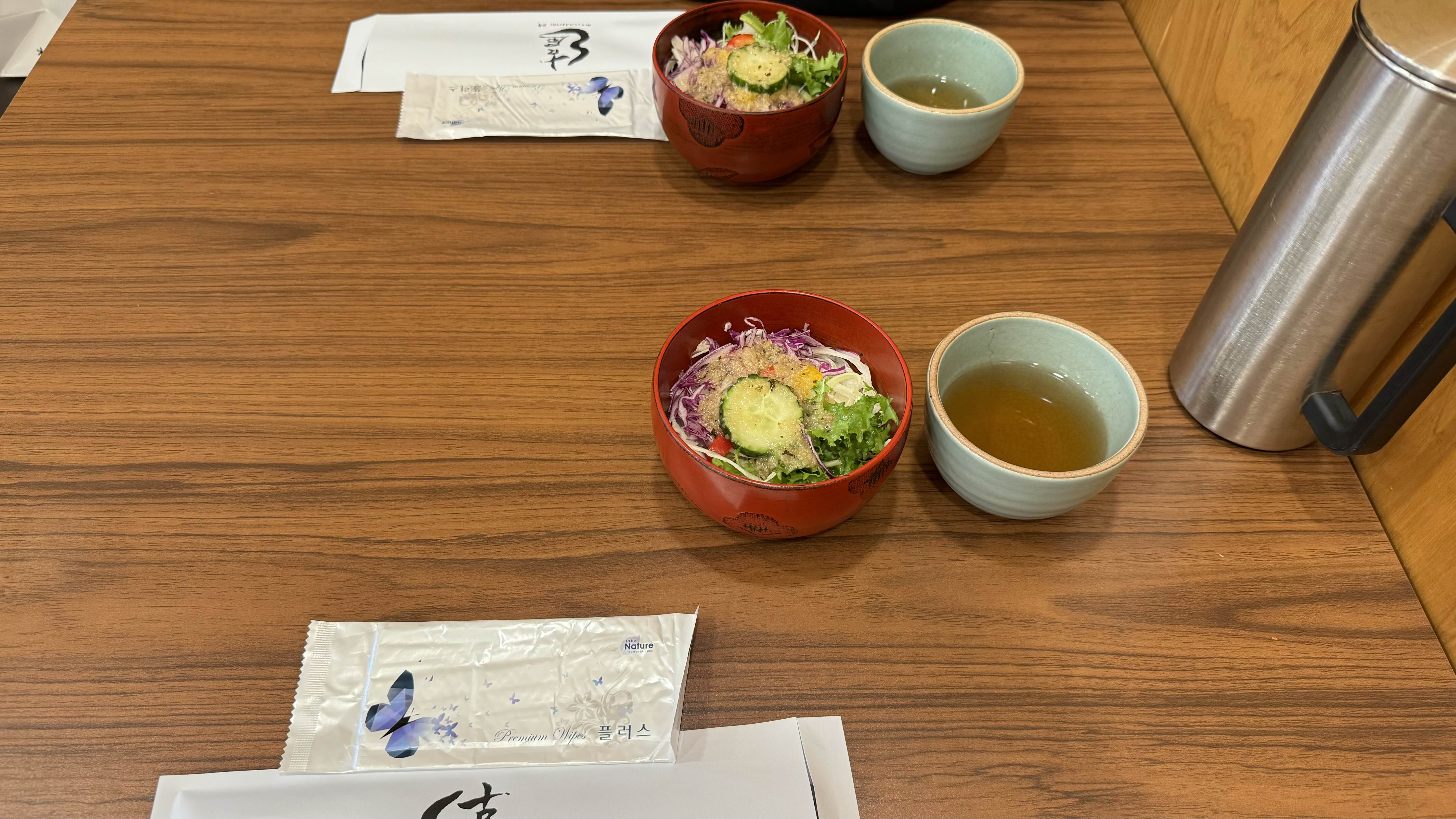 첫끼여서 너무 배고픈 상태라 샐러드를 먼저 먹으면서 기다려봅니다.