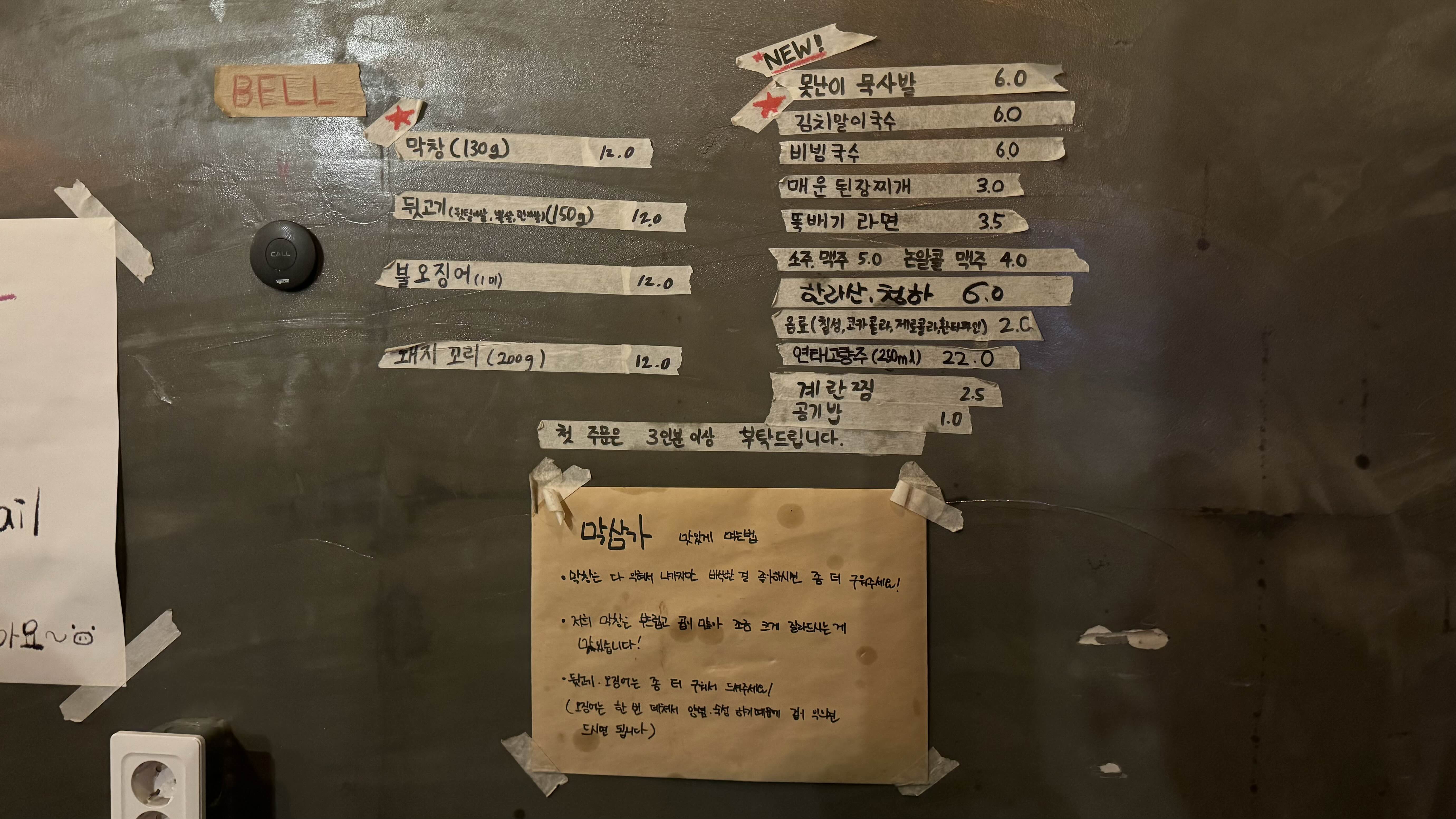 막창 3인분과 돼지 꼬리 1인분을 시켰습니다.