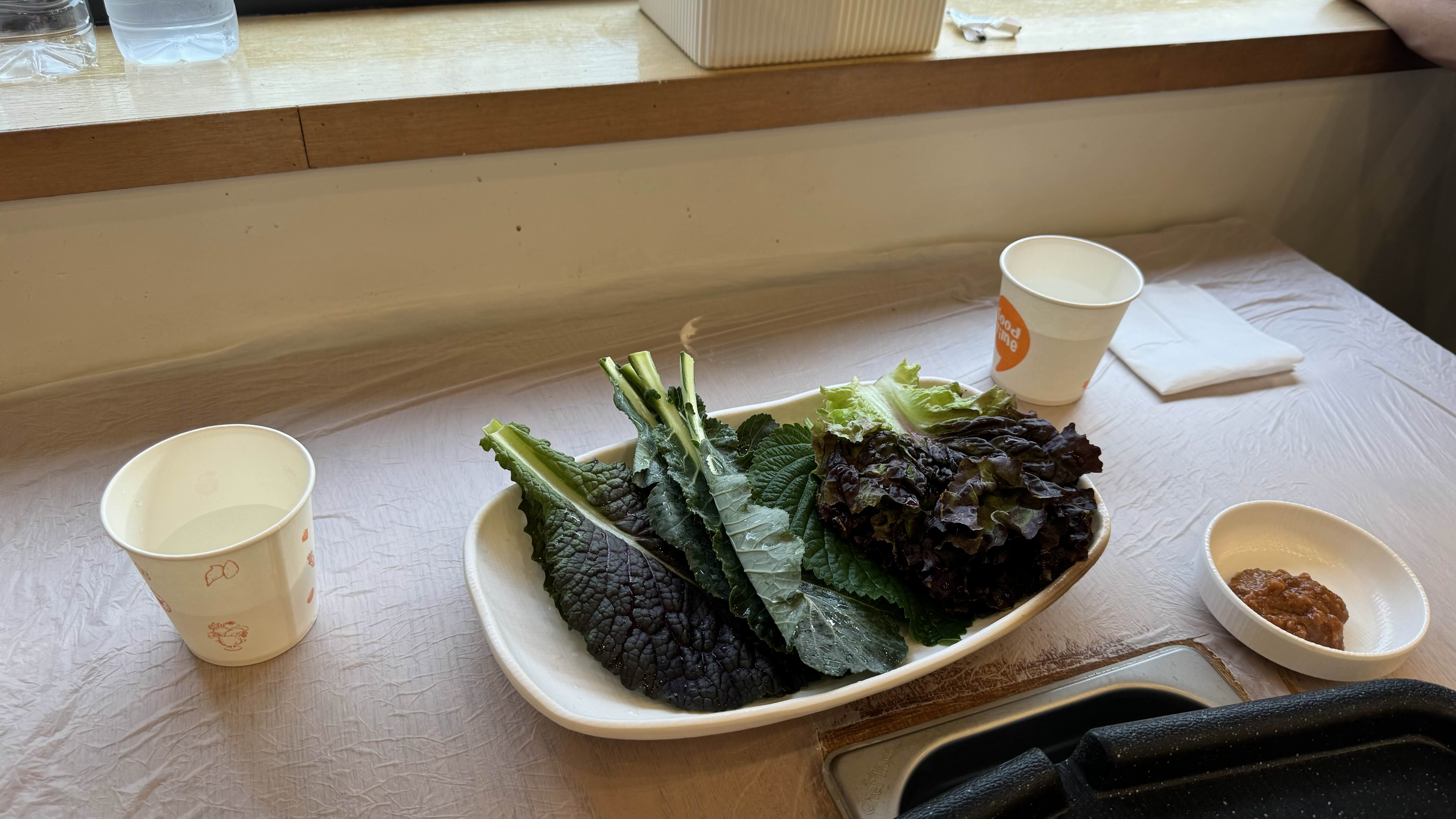 그리고 쌈 야채도 나오고 셀프 코너에 더 준비가 되어있습니다.