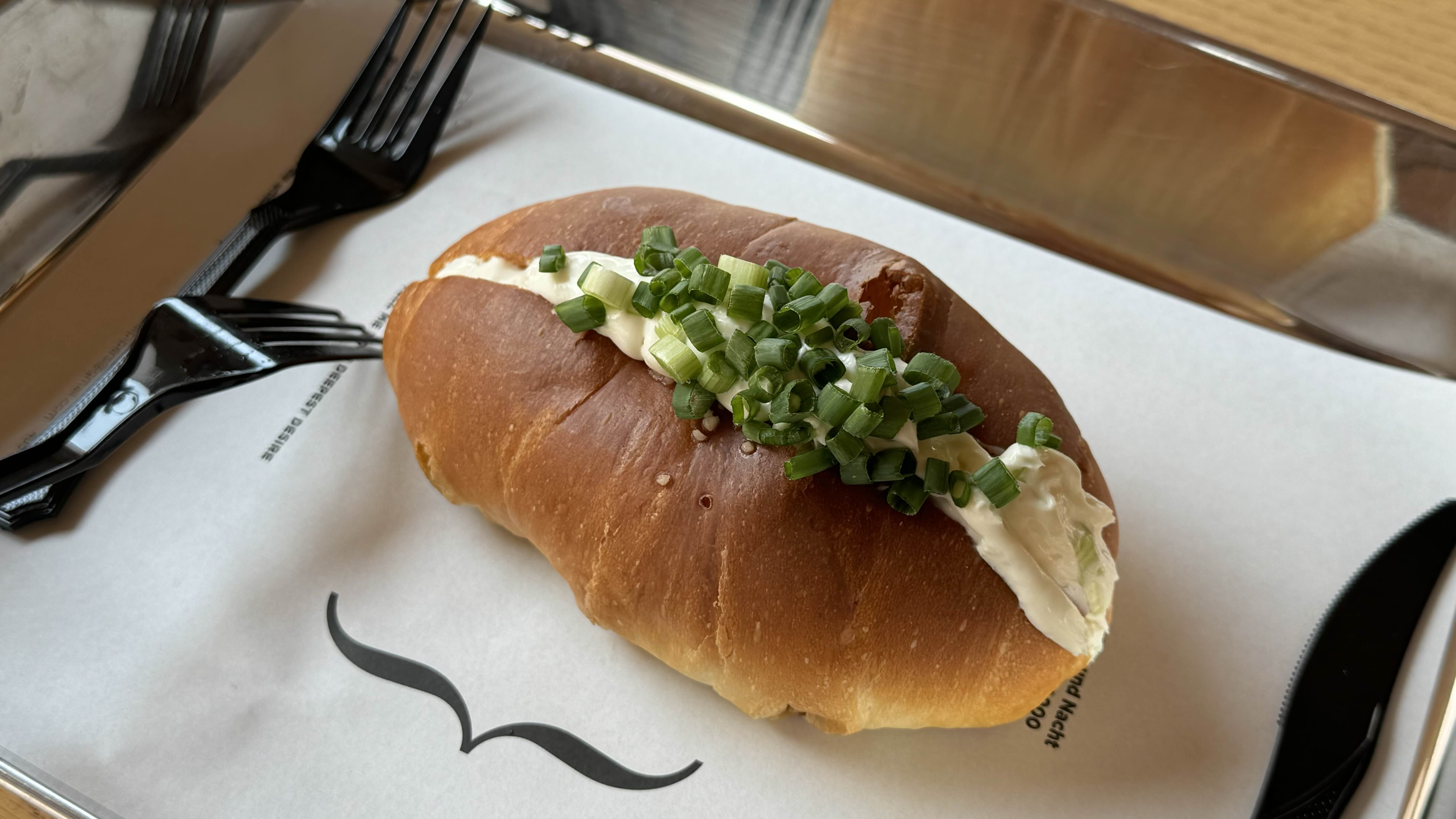 우리가 고른 디저트는 대파 크림치즈 소금빵입니다.