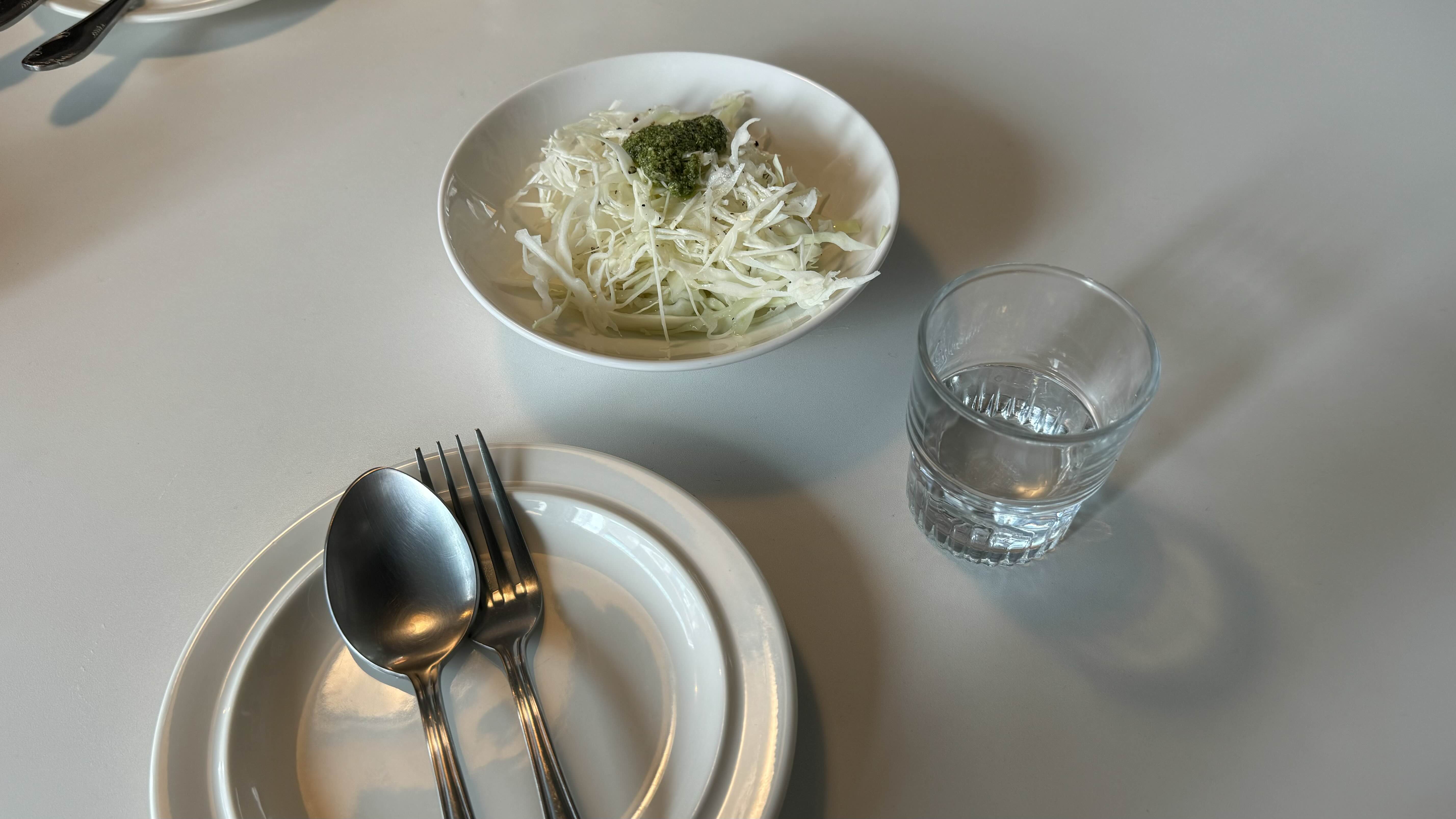 얇게 썰어놓은 양배추 위에 특이하게 바질이 올려져있었습니다.