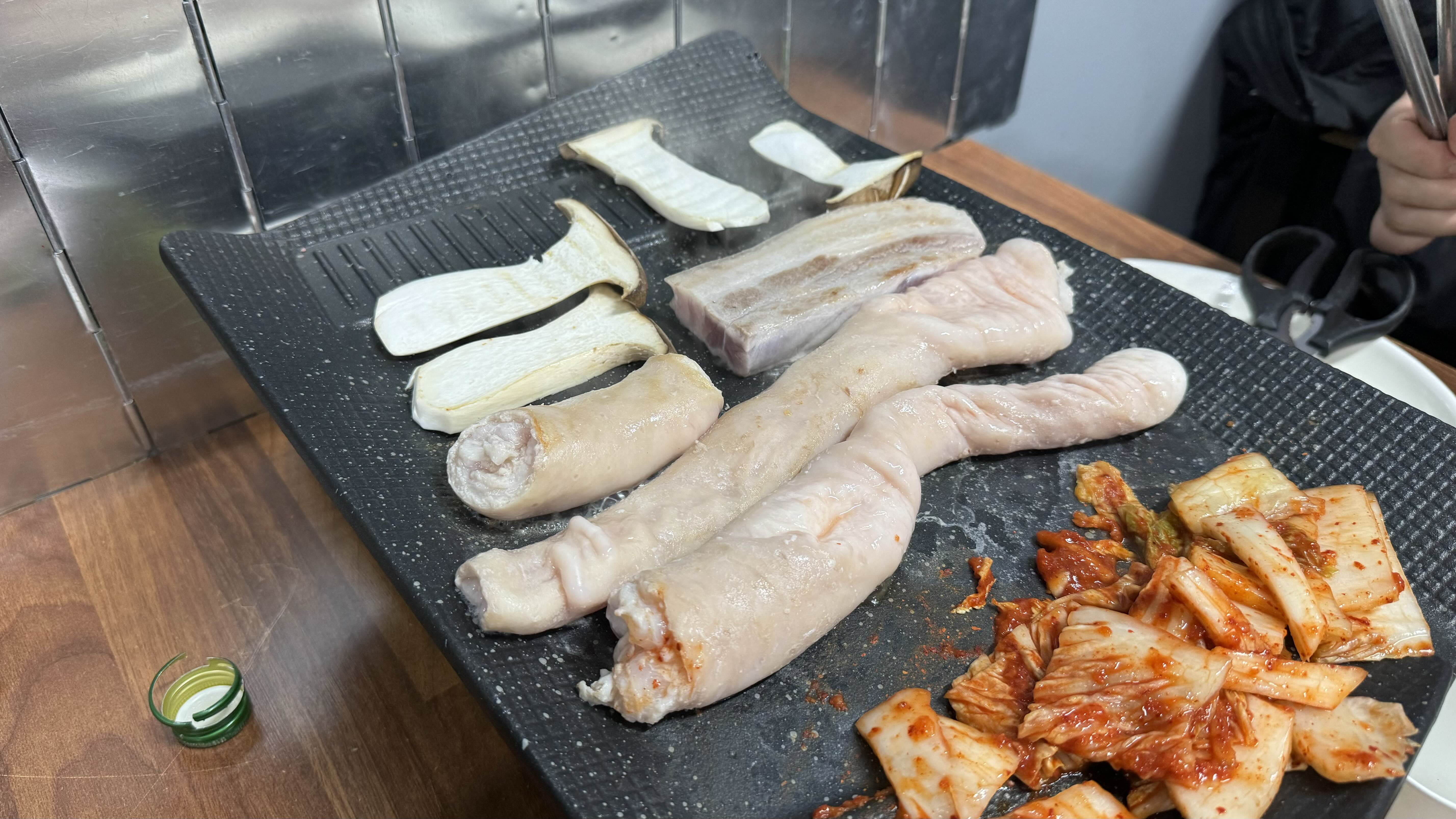 기름 빠지는 곳 바로 앞에는 김치, 콩나물, 고사리 등 올려서 먹으면 더더 맛있습니다.