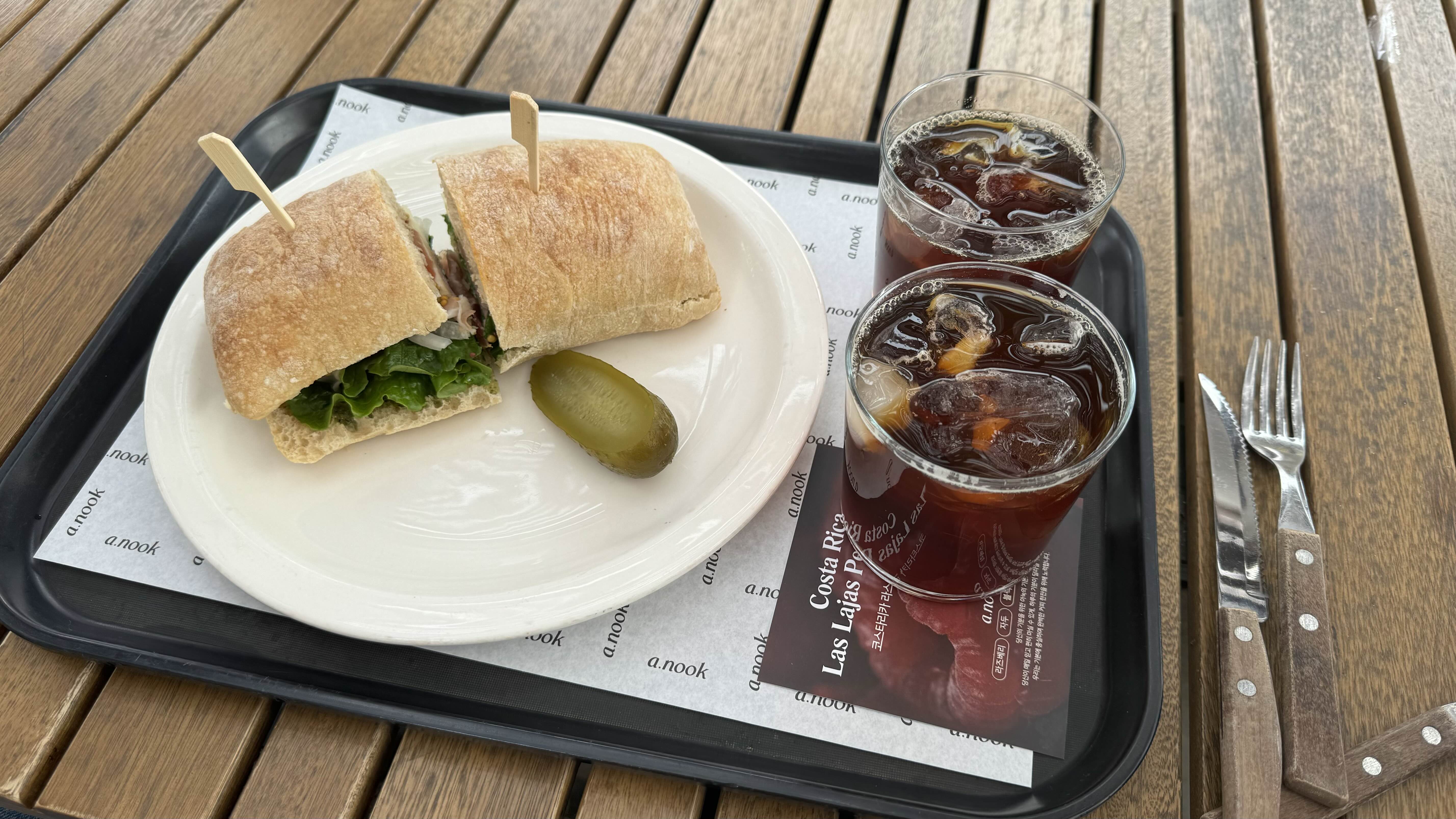 커피는 '코스타리카 라스 라하스 펠라 네그라' 아이스로 두 잔입니다.