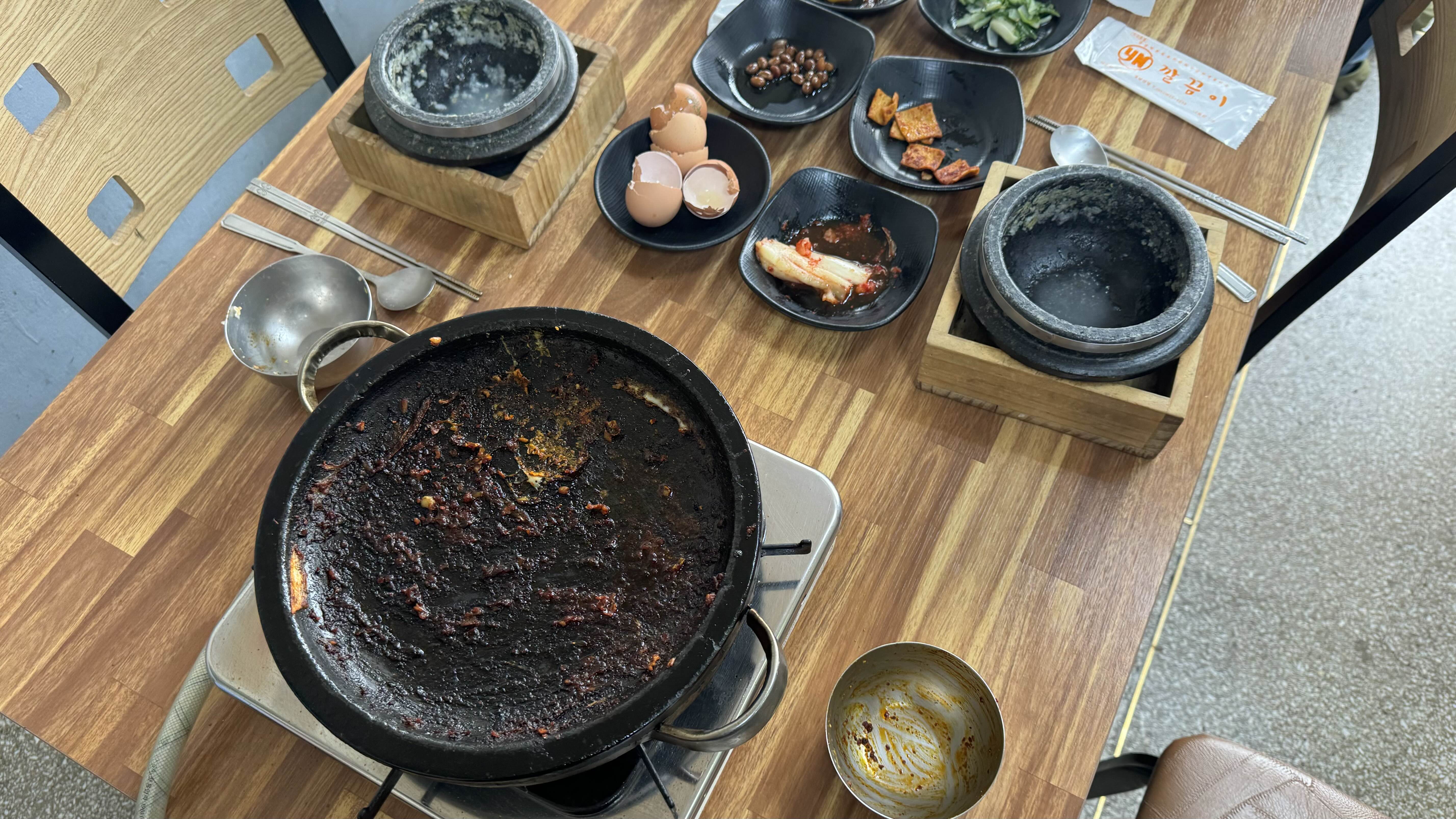 열심히 먹어서 밥과 숭늉, 고기 모두 순삭입니다.