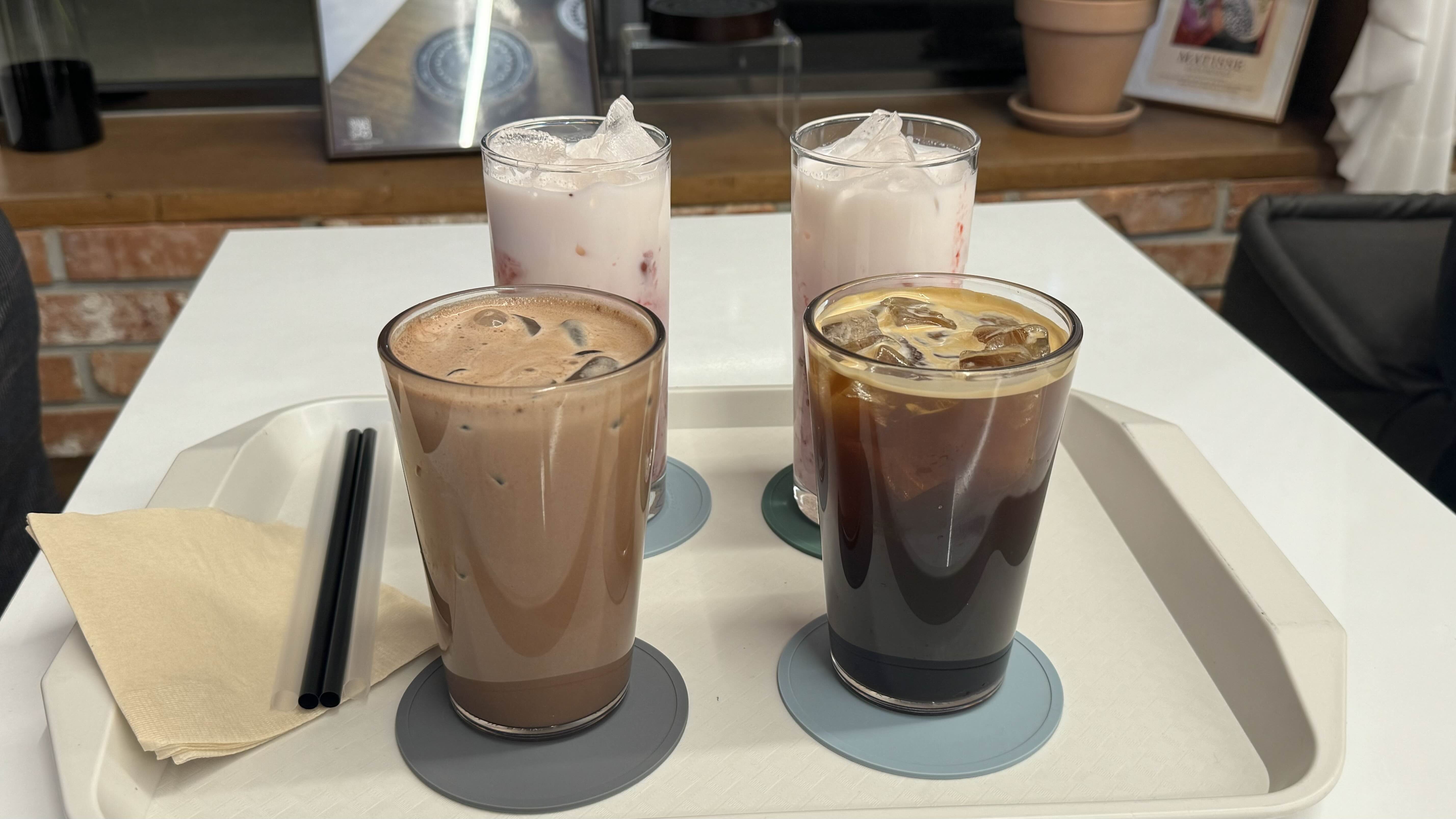 아이스 아메리카노와 초코라떼, 시그니처 딸기라떼 입니다.