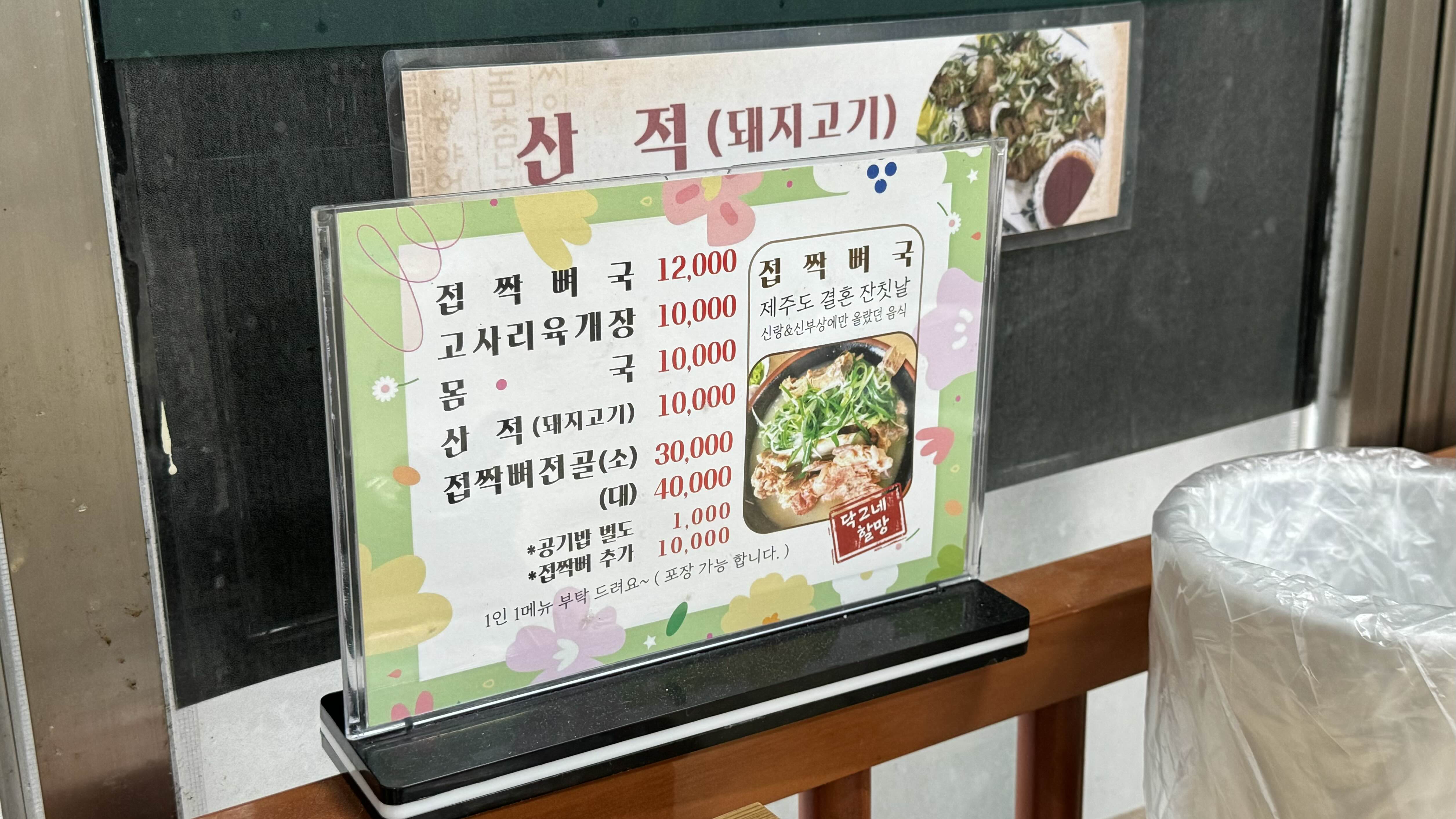 제주도에서만 먹을 수 있는 접짝뼈국과 고사리 육개장이 유명한 곳입니다.