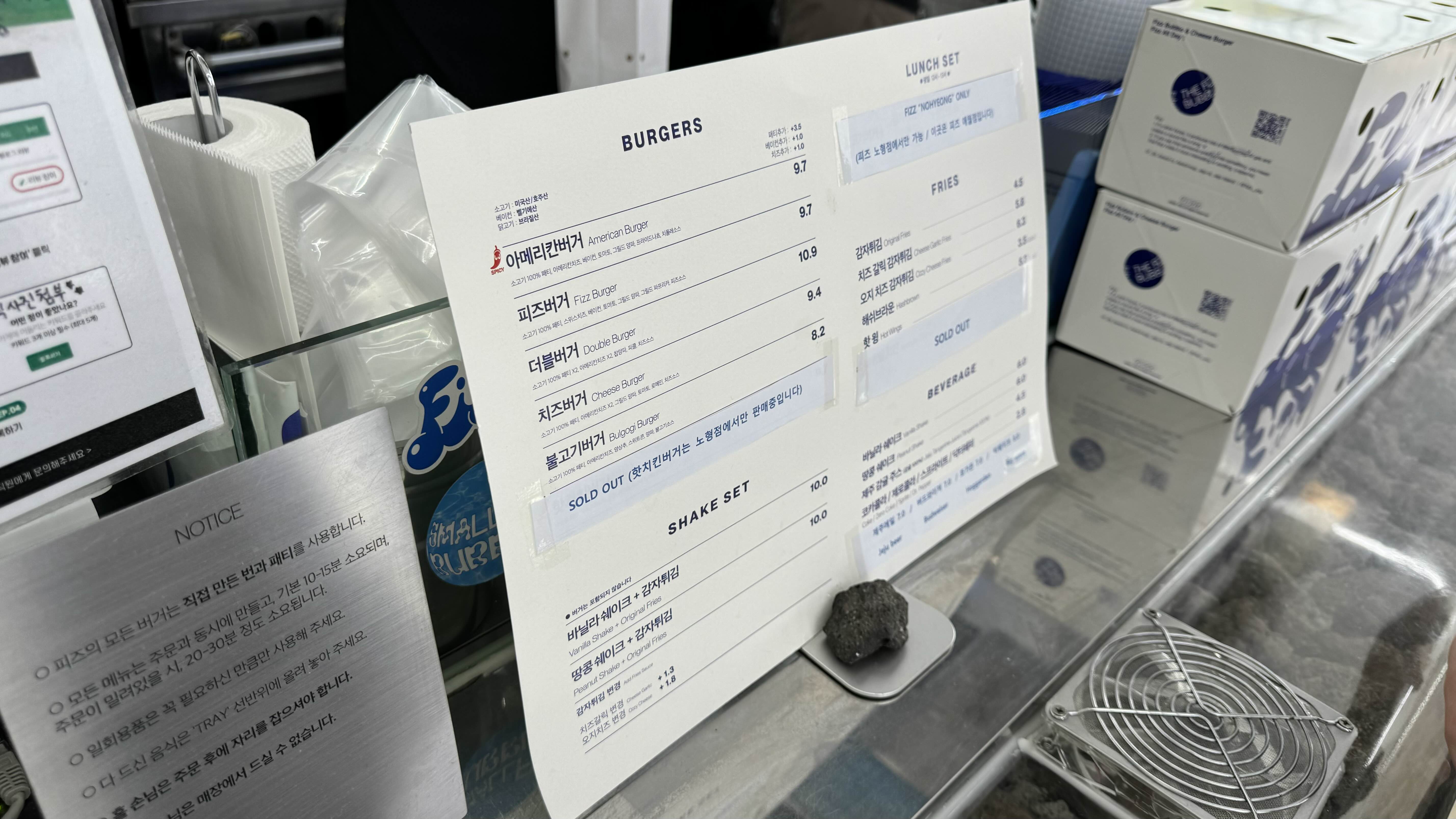 아메리칸 버거에는 소고기 패티랑 베이컨, 나쵸가 들어있고 더블 버거는 말 그대로 패티랑 치즈가 두장입니다.