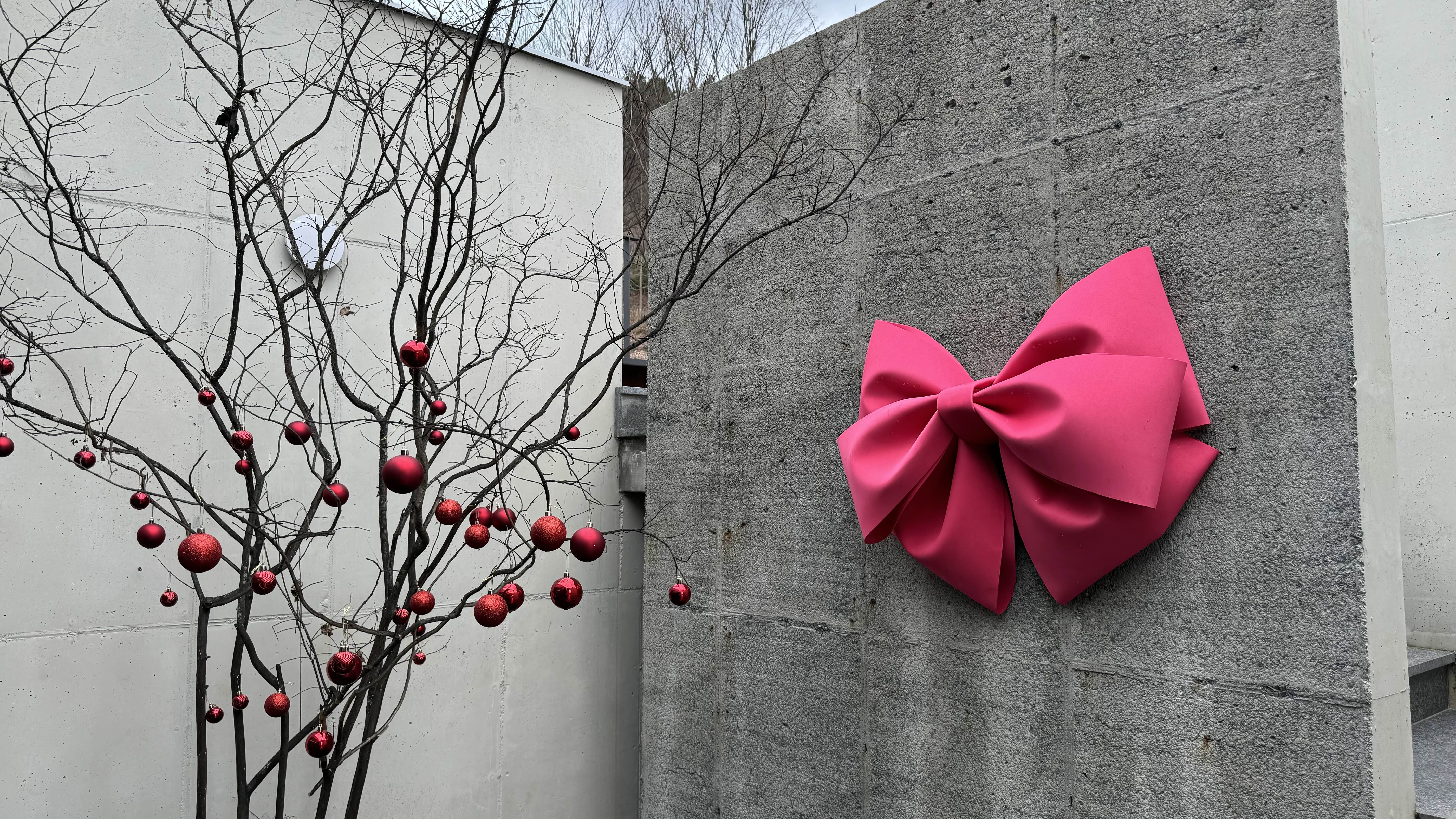 리본이 보이는 곳 뒤로 테라스로 가는 계단이 있습니다.