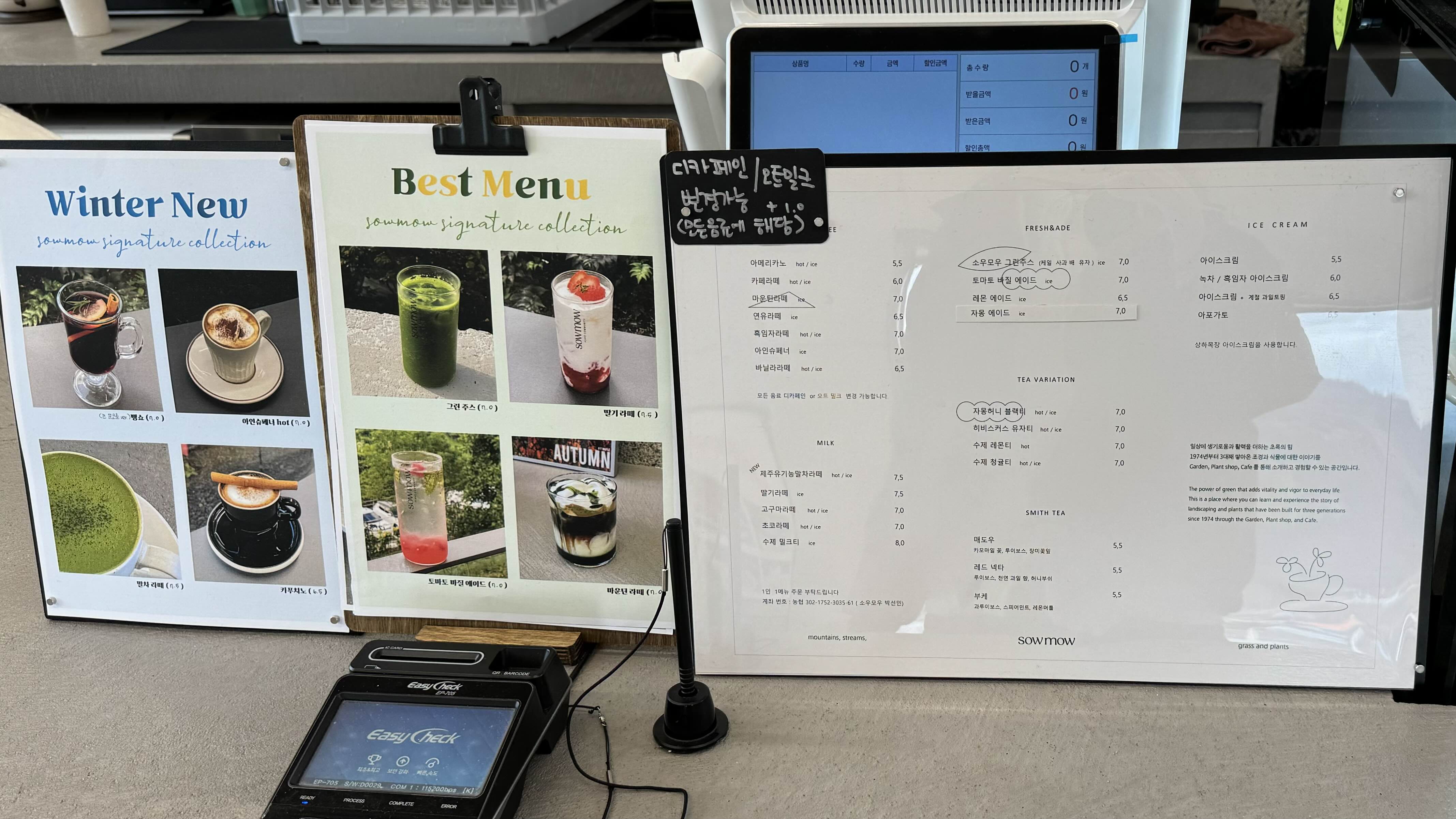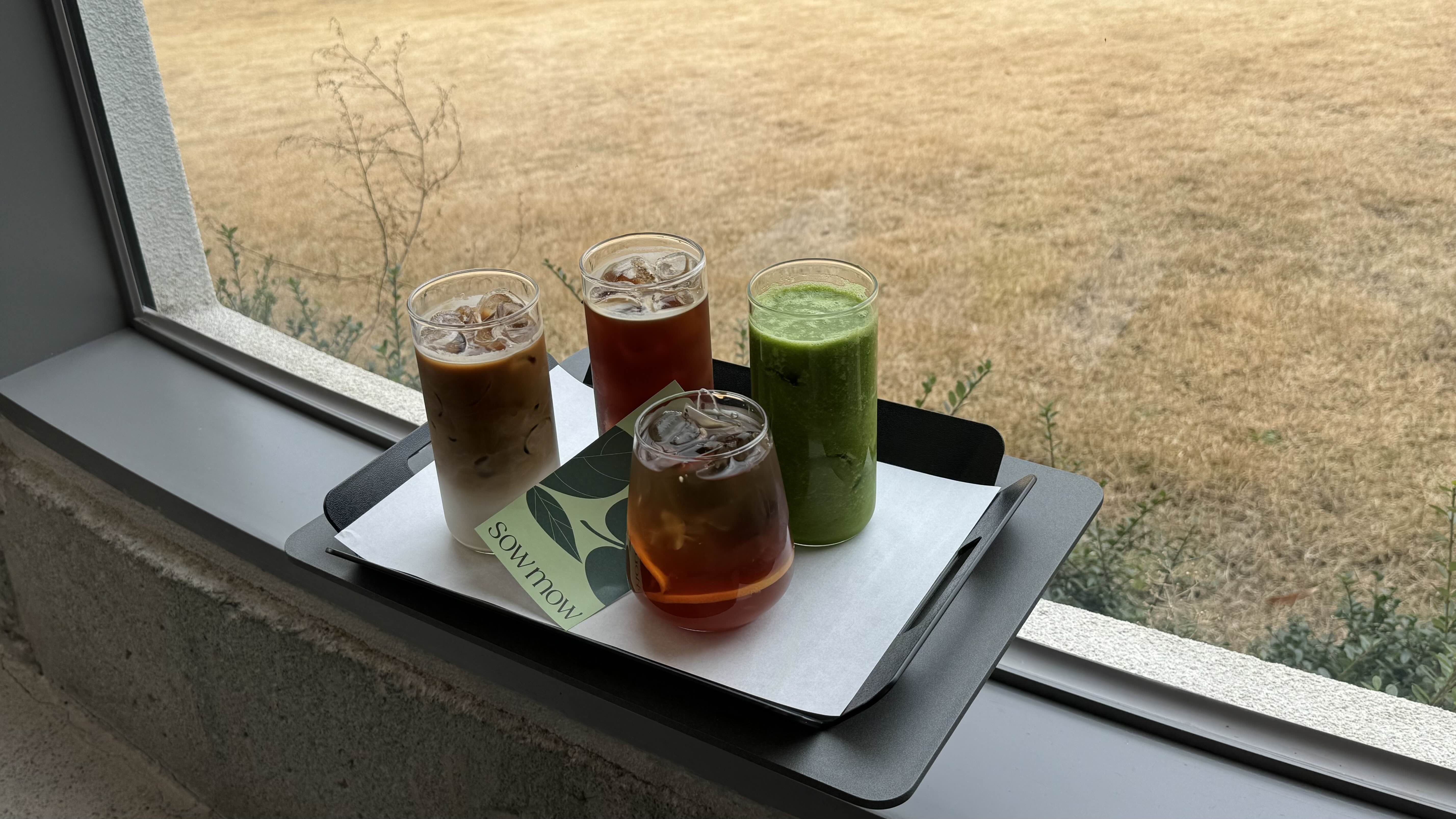 아이스 아메리카노, 아이스 바닐라라떼, 그린주스 (케일 사과 배 유자), 자몽허니 블랙티