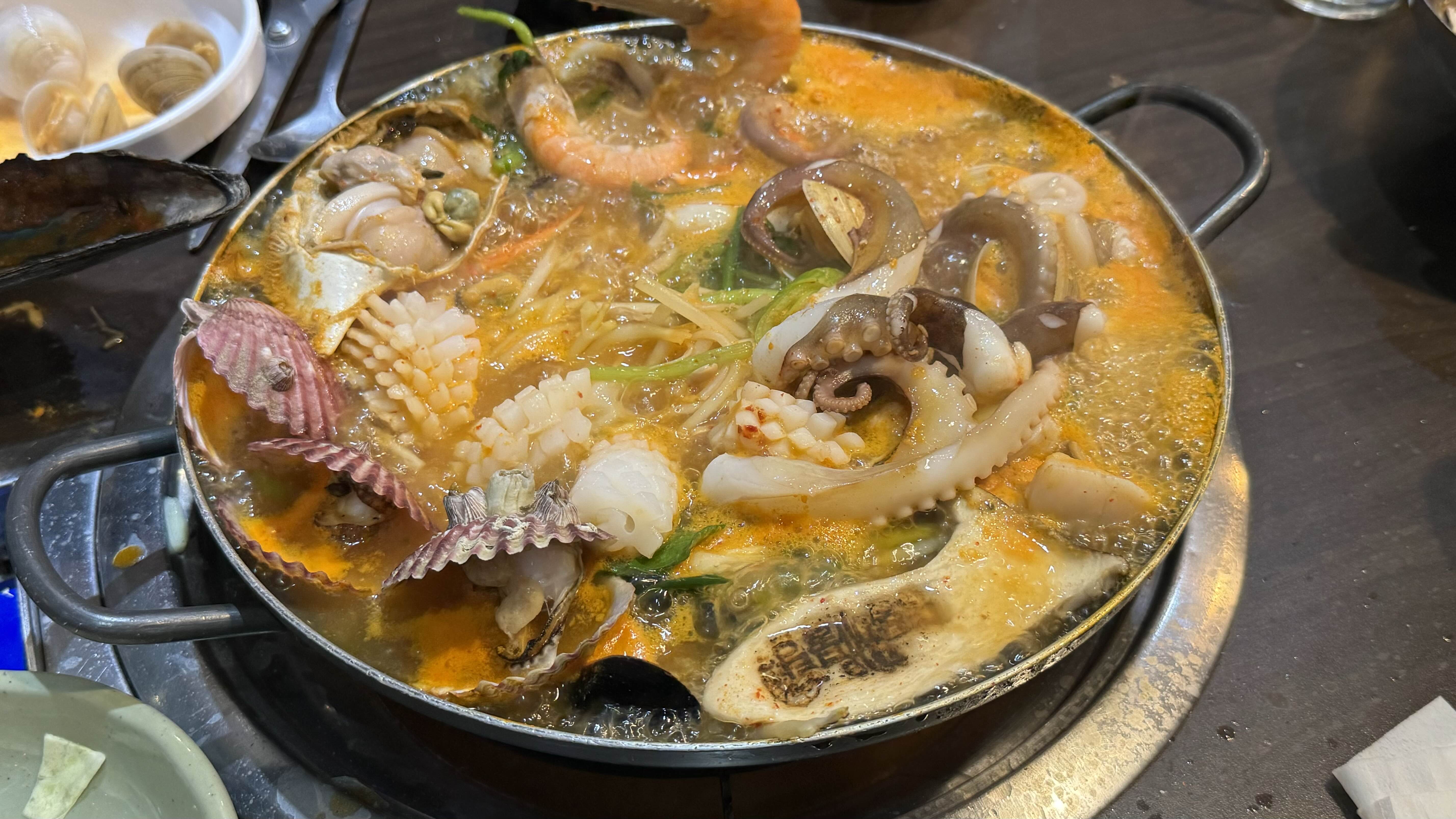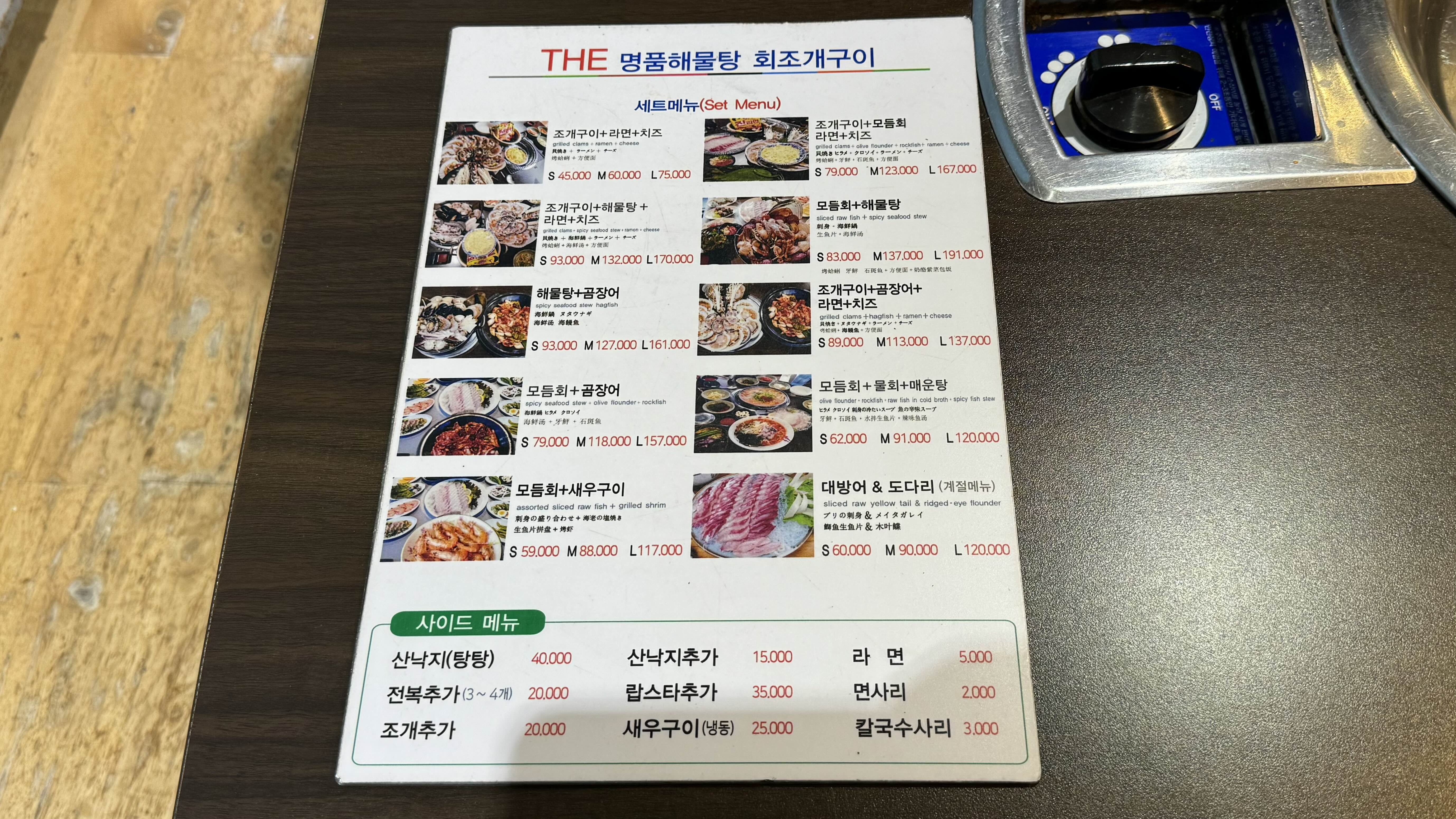 저는 2명이서 방문했고 조개구이 + 해물탕 + 라면 + 치즈 S 사이즈로 주문했습니다.